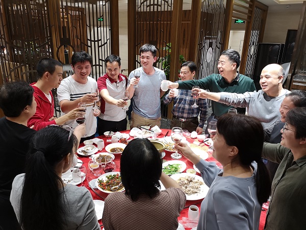 會后大家齊聚旺角海鮮菜館,舉杯暢飲,充分交流,互動頻繁,大伙談論工作,也敘說情誼,更多的是相互感恩!員工感恩老板,老板感謝大家,同事之間相互感恩彼此的幫助和支持。晚宴氣氛熱烈,交互的深入程度前所未有,每個人臉上洋溢著燦爛的笑容,哪怕隔著屏幕看照片,相信你也能感受到現場那份濃濃的、發自內心的歡樂的氣氛!