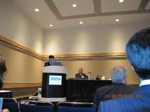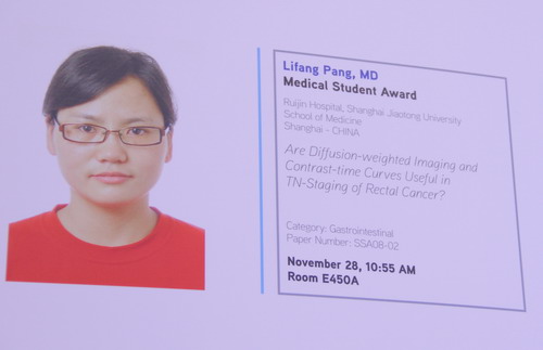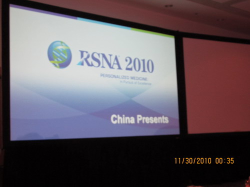 而隨著中國人參與RSNA人數的增多,以及研究的發展進步。RSNA的中國印記愈加明顯。11月29日,一場由中華醫學會放射學分會舉辦的專場會議隆重舉行,這是RSNA首次在科學會議中推出的以展現中國為一題的會議,內容有前列腺癌的磁共振成像、彌散MR加權成像對從頭到腳的外周神經進行成像、嚴重顱內狹窄的支架植入轉歸、磁共振成像對針灸進行研究、細胞移植的MR成像、以及SARS放射學等,成為世界放射學界度“中國印象”的全面深刻解讀。