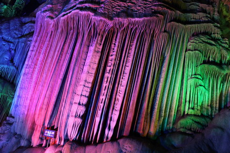 下午我們游覽了“世界溶洞奇觀”銀子巖,它因洞內鐘乳石如銀子般閃閃發亮而得名,是桂林最新最美麗的巖洞。它貫穿12座山峰,匯集了不同地質年代發育生長的各種類型的鐘乳石,以音樂石屏、廣寒深宮、雪山飛瀑“三絕”和佛祖論經、獨柱擎天、混元珍珠傘“三寶”等景點為代表。造型奇特,形態各異,惟妙惟肖,讓人驚嘆大自然的鬼斧神工,創造了如此美麗的畫卷。