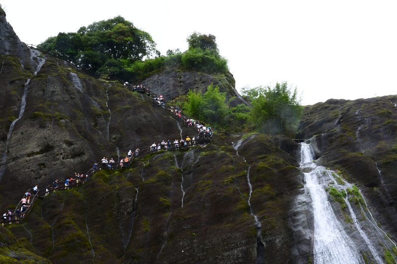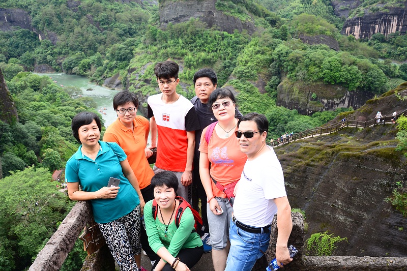 清晨,我們進入武夷山景區(qū),登上天游峰,感受它的險峻俏麗,厚重與質(zhì)樸。下午,我們乘著竹筏,在九曲溪緩緩漂流,小雨飄到臉上,甚是輕柔涼爽。一睹大王峰、玉女峰、虎嘯巖的風(fēng)采,靜靜地享受那份愜意與悠閑。我們又來到一線天,感受大自然鬼斧神工造化,在夾縫中攀巖,挑戰(zhàn)自我。晚上,我們欣賞了大型實景演出《印象大紅袍》,在一場華麗的演出中深深地領(lǐng)略閩西茶文化,在研習(xí)茶文化的同時思考人生,啟迪自我。次日,我們又觀看了大紅袍茶樹和水簾洞等景點。