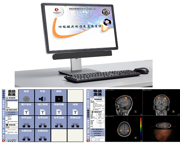 功能磁共振臨床應用系統軟件可裝在腦功能視聽覺刺激系統中,其主體部分任務態fMRI數據處理模塊,可作為系統控制應用軟件運行,實現設備硬件操作控制和刺激任務輸出。該系統內置了臨床型科研常用的fMRI刺激任務,主要包括常規視覺、聽覺、運動、語言等經典類別;所有任務為區塊設計,易于操作與修改。軟件包數據庫可與用戶的磁共振設備或PACS系統連接,實現快速數據傳輸與存儲。